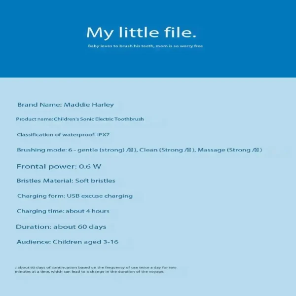 مسواک برقی کودک برند MDHL مدل nice دارای 3 حالت مسواک است. مسواک برقی کودک MDHL-NICE از نظر آرگونومی طراحی شده است که باعث می شود کودک شما هم در دهان خود و هم در دست خود احساس راحتی در زمان مسواک زدن داشت.
