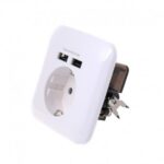 پریز یو اس بی شارژر دار چنگک دار دارای برد الکترونیکی مورد تایید اتحادیه اروپا (CE) میباشد و ولتاژ خروجی پورت های USB آن 5 ولت و جریان خروجی 2.1 آمپر است و به راحتی می تواند تمام تلفن های هوشمند و لوازم الکترونیکی را شارژ نماید. با توجه به استفاده زیاد پریز های چنگک دار در ایران ، سایز استاندارد محصول به همراه چنگک های پشت آن استفاده از پریز را برای تمامی محل ها راحت میکند. حتماً تا به حال در زمان وارد کردن دوشاخه آداپتور به پریز، جرقه ای کوتاه را مشاهده کرده اید.